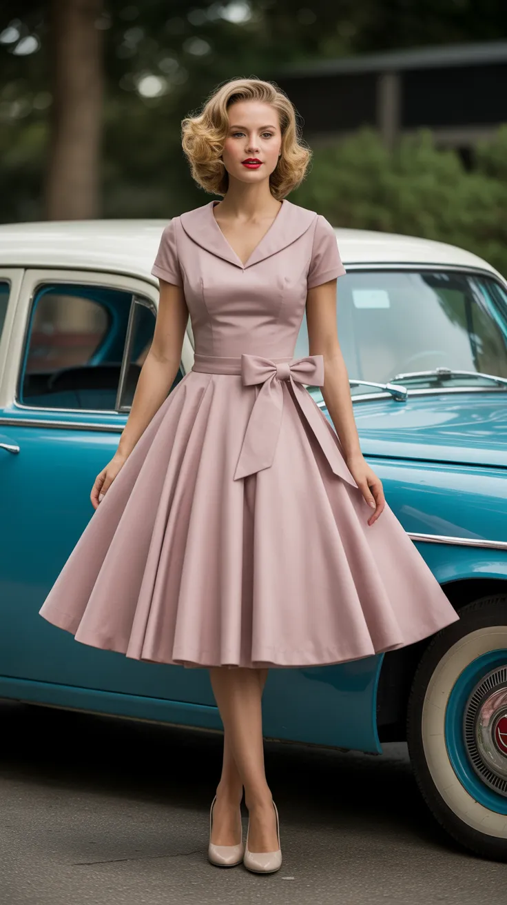 The 1950s circle skirt dress is a true classic in the world of vintage glam. This style captures the essence of retro fashion, showcasing a flattering silhouette that accentuates the waist while allowing for graceful movement.