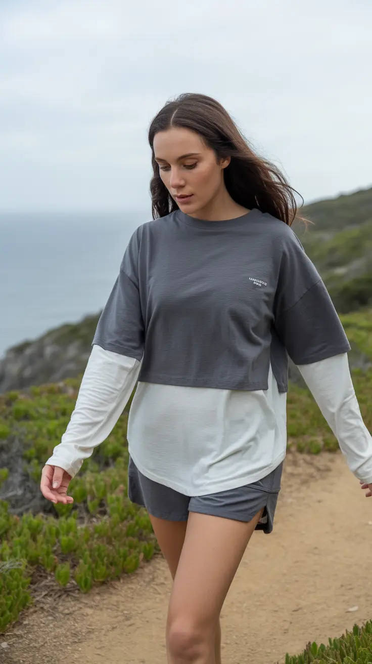 Layering is a smart way to stay comfortable while embracing nature-inspired fashion. This outfit combines a light long sleeve with shorts, making it perfect for those warm summer days. The breathable fabric allows for airflow, keeping you cool as you explore the outdoors.