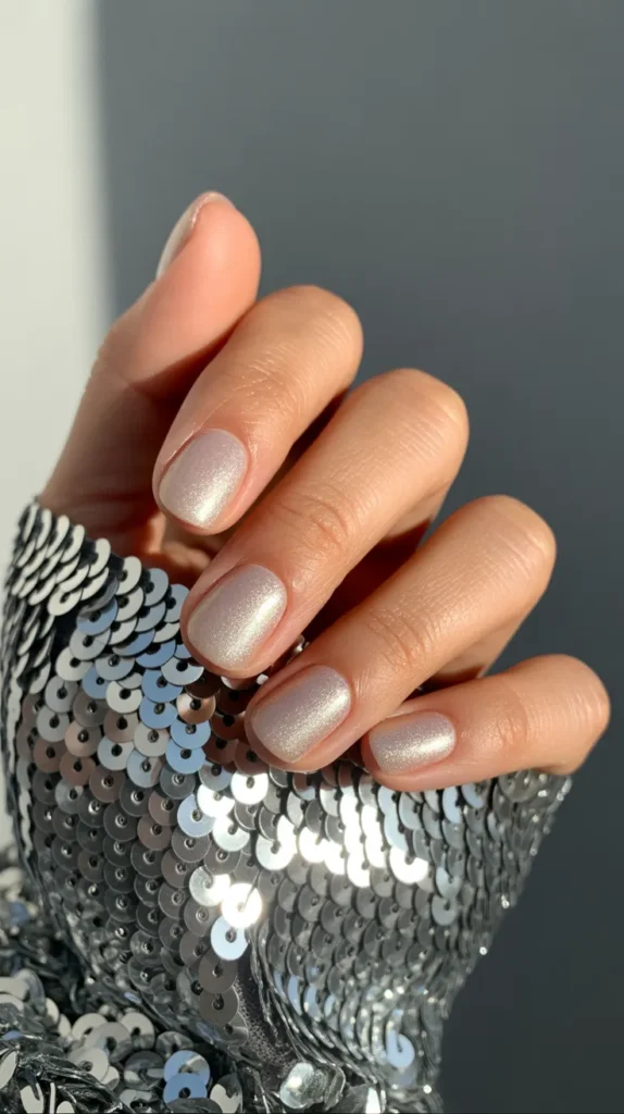 Add shimmer: A touch of glitter or chrome keeps short nails festive without overpowering them.