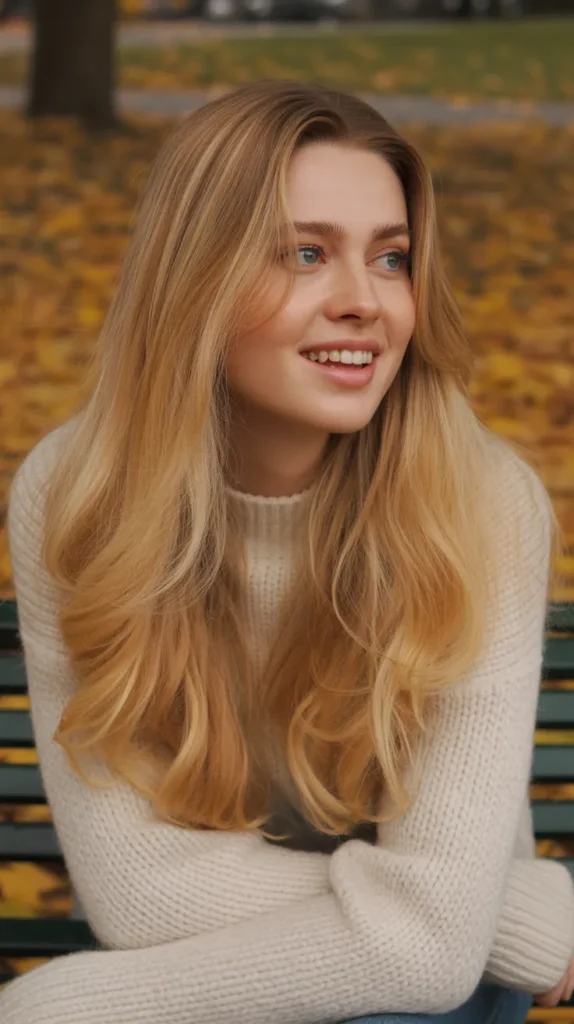 Golden blonde waves are the definition of glow-worthy soft autumn hair ✨. Long, flowing waves in this shade add warmth and bring out the softness in your features. The golden tones catch the autumn light beautifully, making cute hair looks feel instantly more radiant. It’s an easy way to brighten your vibe without going too bold. Think fall strolls with a latte in hand this hair color for autumn matches the mood perfectly.