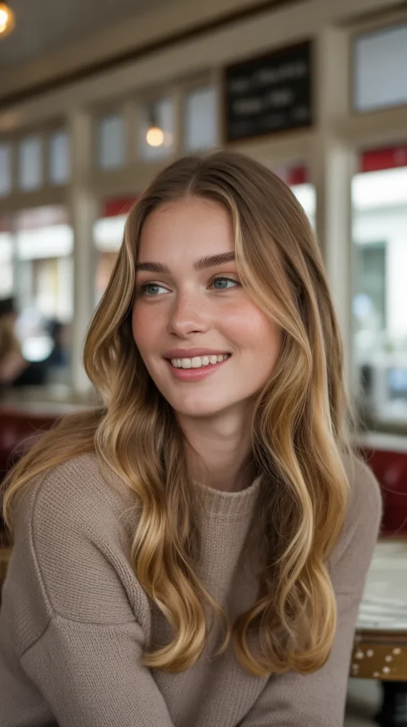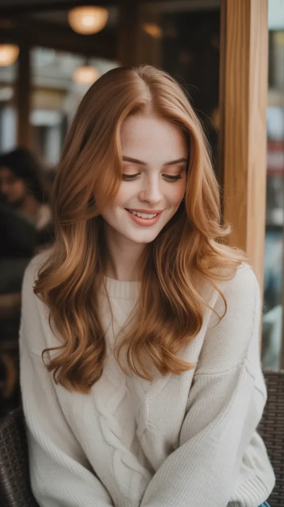 Muted caramel waves are a subtle way to glow for fall ☕. The toned-down caramel shades softly frame the face, giving a romantic, cozy vibe. This look proves that soft autumn hair doesn’t have to be dramatic to stand out. The waves show off the muted tones, making them shine in natural light. It’s chic, pretty, and timeless for autumn.