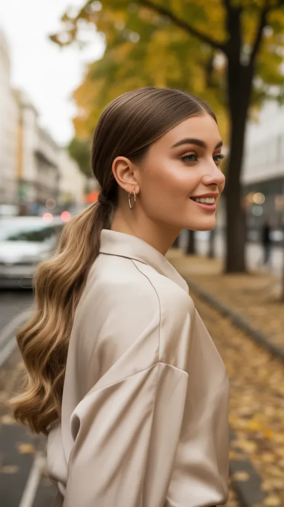 A golden caramel ponytail is proof that simple styles can be chic 🍯. The sleek look with caramel tones feels polished while staying soft for autumn. It’s perfect for office days, casual weekends, or even dressing up. Caramel shades show beautifully in ponytails, catching the light with every move. This is one of the easiest ways to make soft autumn hair look polished and trendy.