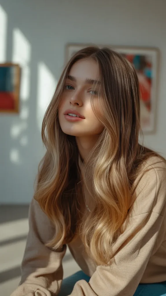 Golden beige highlights are understated but powerful for soft autumn hair 🌟. Adding them to a straight brunette base gives your style instant depth and polish. The beige keeps the look natural, while golden tones bring warmth. This combination is perfect for creating chic, soft fall hair that looks effortless but radiant. It’s like autumn sunlight woven into your strands.