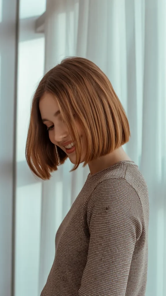 A chestnut brown bob brings effortless polish to soft fall hair 🍂. The chin-length cut paired with warm chestnut tones feels modern but still cozy for the season. It’s a chic choice that frames the face beautifully while keeping maintenance easy. Chestnut is one of those shades that always looks chic as a hair color for autumn. If you want a simple update that makes cute hair glow, this is it.