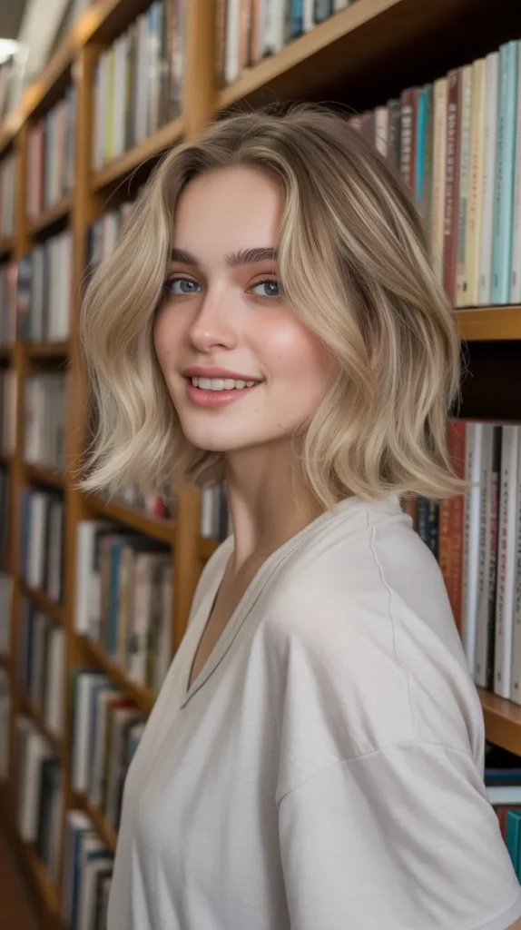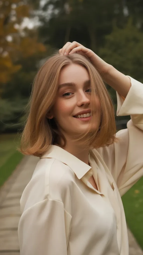 The buttery blonde lob feels soft, creamy, and oh-so chic 🧈. Shoulder-length strands with gentle lowlights create cozy seasonal depth. It’s a versatile option for soft autumn hair because it works styled sleek or in waves. Buttery blonde has just the right amount of warmth to feel autumn-ready while still keeping your blonde bright. Perfect for anyone wanting effortless cute hair this season.