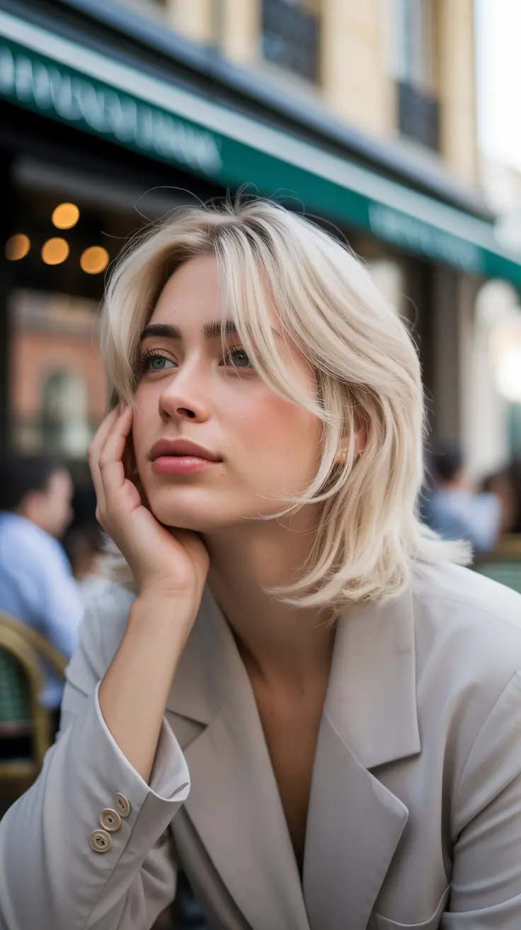 This hairstyle is not just about the cut; the color plays a huge role. Creamy vanilla blonde hair shines beautifully, reflecting light and adding dimension. It’s a versatile shade that complements various skin tones, making it a popular choice for many.