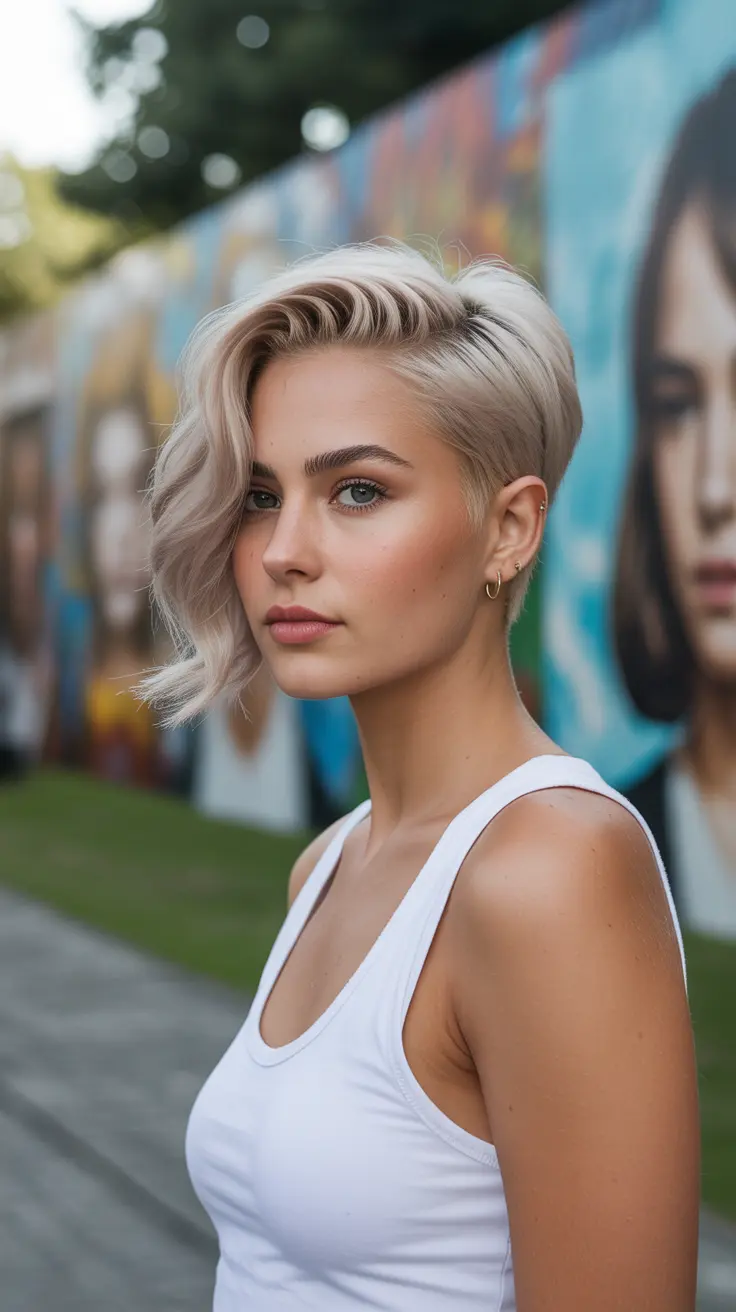 A pixie cut is a bold choice, and when paired with creamy vanilla blonde hair, it becomes even more striking. This hairstyle features short layers that frame the face beautifully, highlighting the eyes and cheekbones.