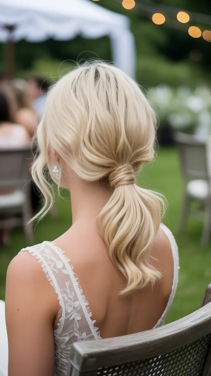 This effortless hairstyle is not only chic but also practical. It keeps hair away from the face while still showcasing the lovely vanilla blonde color. The loose ponytail adds a relaxed vibe, making it suitable for both casual outings and more formal events.