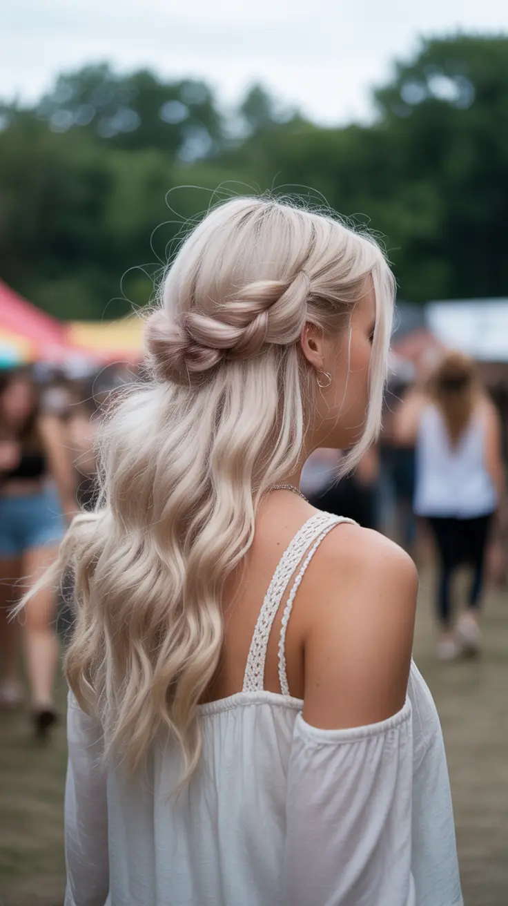 13.Vanilla Blonde Hair With Boho Half-Up Twist