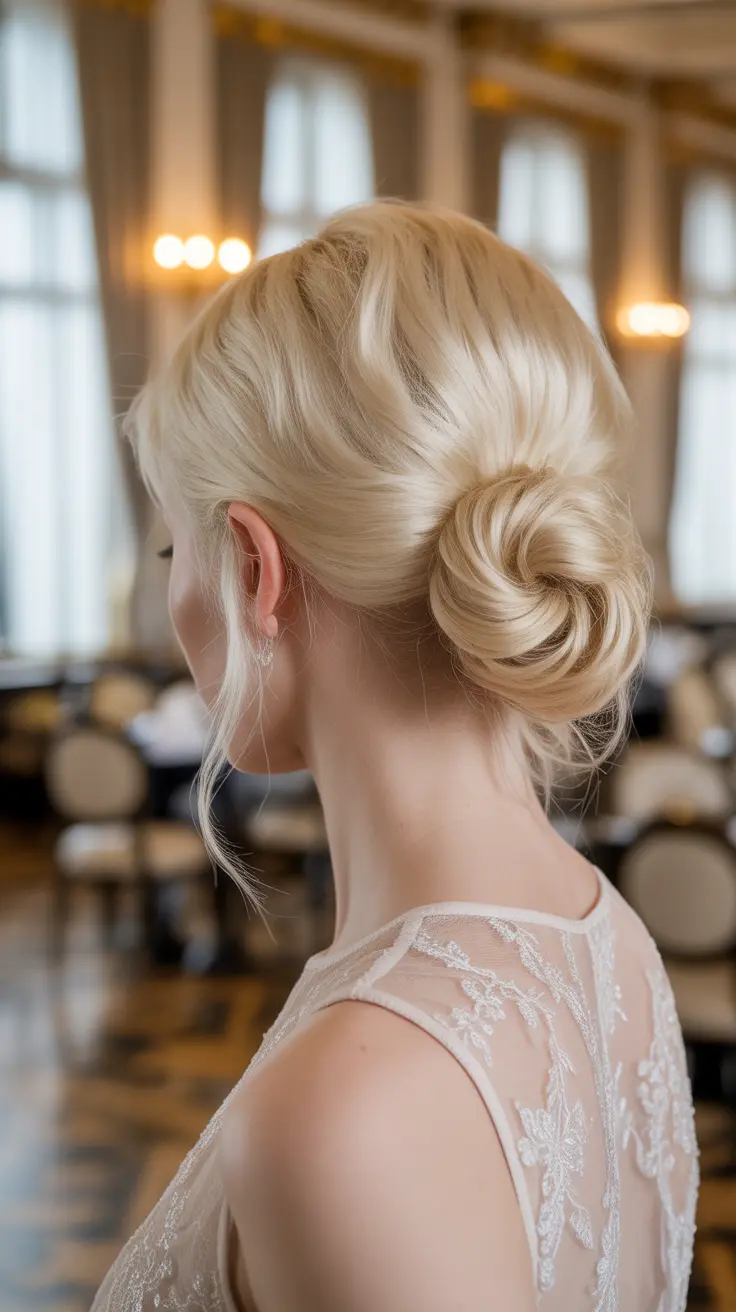 15. Vanilla Blonde Hair In An Elegant Updo
