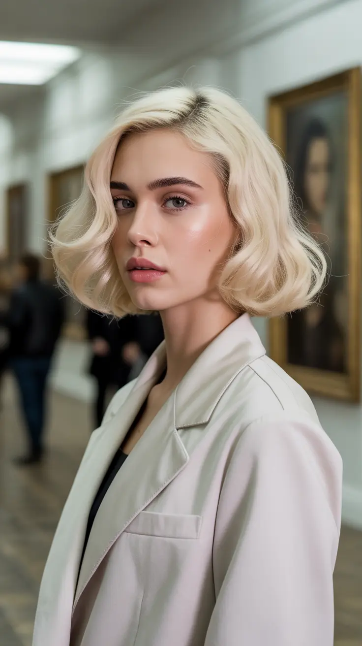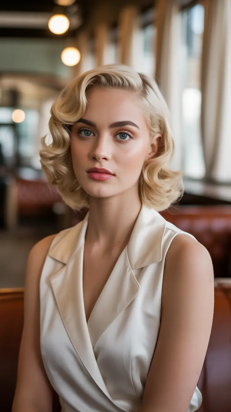 Soft vintage waves are a stunning way to showcase creamy vanilla blonde hair. This hairstyle brings a touch of elegance while keeping things light and playful. The gentle curls frame the face beautifully, enhancing your features and adding a youthful glow.