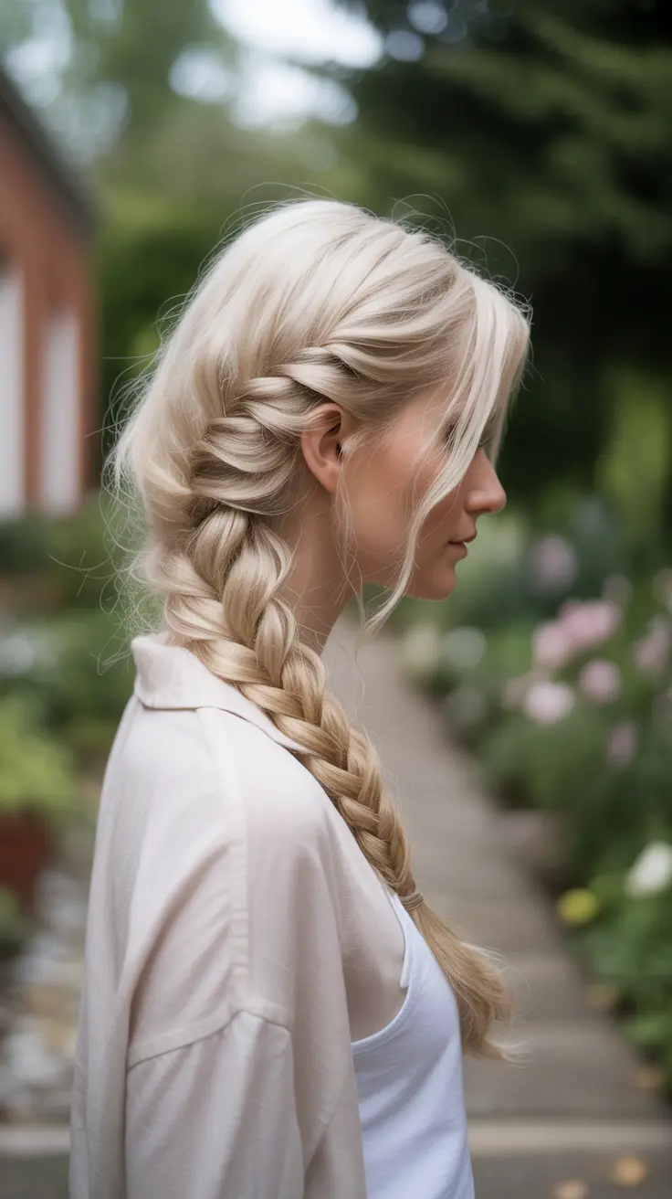Vanilla blonde hair is a stunning choice that exudes a soft, creamy vibe. The loose side braid adds a relaxed touch, making it perfect for casual outings or special occasions. This look combines buttery blonde tones that catch the light beautifully, creating a glow that’s hard to miss.