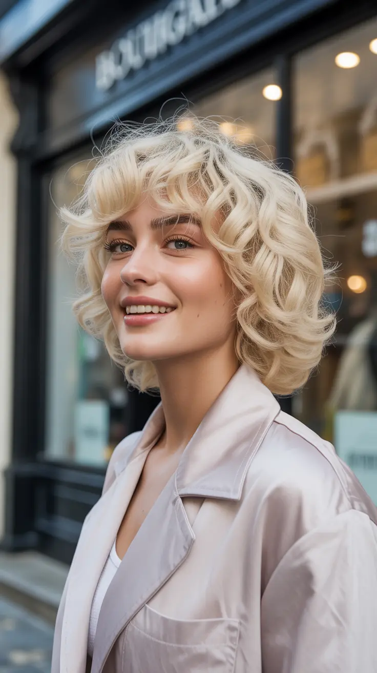 Soft curly shags are a fantastic way to showcase creamy vanilla blonde hair. This style adds a playful vibe while keeping things chic and modern. The curls bounce beautifully, giving the hair a lively texture that catches the light.
