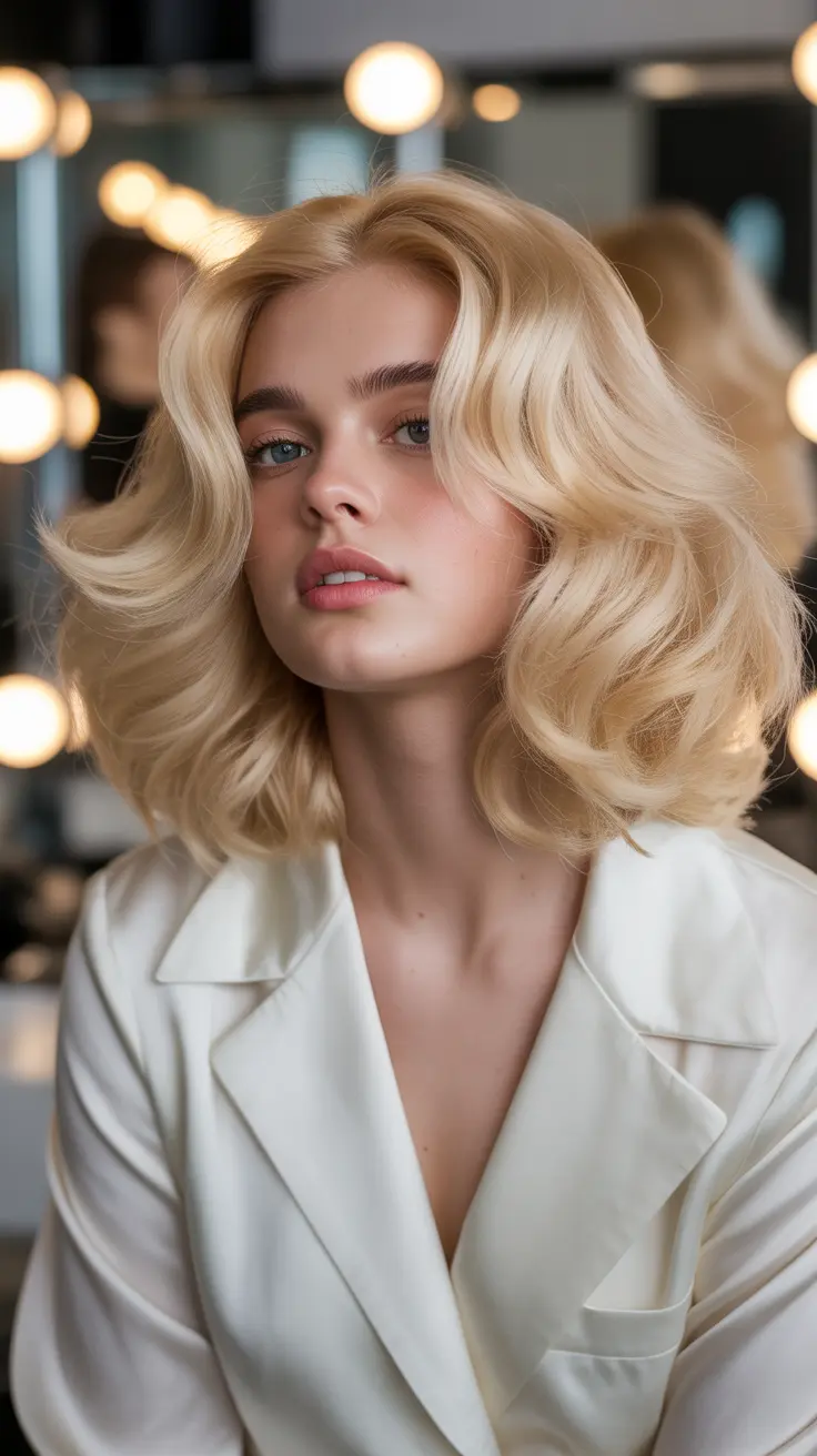 19. Vanilla Blonde Hair In Soft Vintage Waves