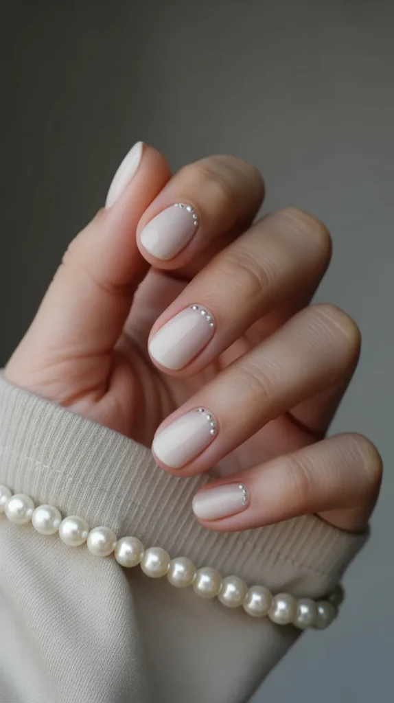 Matte ivory nails with rhinestones are delicate and refined. Tiny crystals near the cuticle add just the right amount of shine without losing that clean matte finish. A stunning December nails option for winter weddings or parties.
