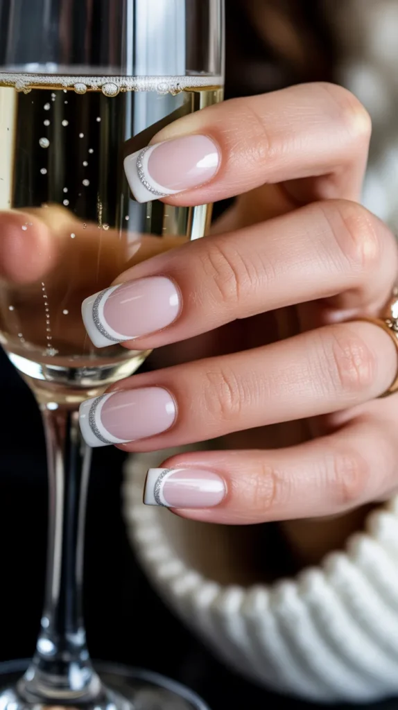 This twist on a French manicure feels modern and refined. The slim silver lining adds sparkle while keeping the look balanced and clean. Itβs an elevated holiday nails choice for understated glam. β¨