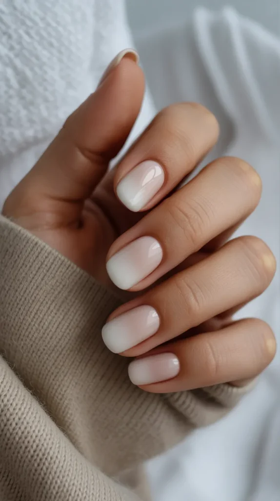 Milky white French fade nails are soft, subtle, and endlessly elegant. The seamless blend from nude to white gives your December nails a clean, polished vibe. Ideal for anyone who prefers timeless over trendy. π€