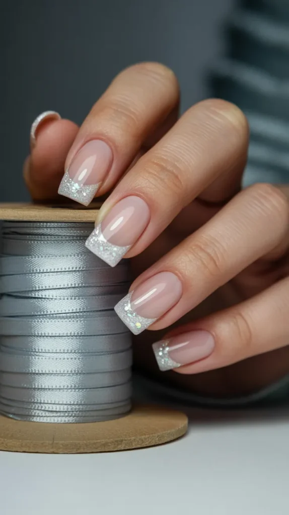 Sparkling snow tip nails are a fresh spin on the French manicure. The glittery white ends shimmer like frost on glass elegant yet festive. Perfect for xmas nails that feel sophisticated, not overdone. β¨