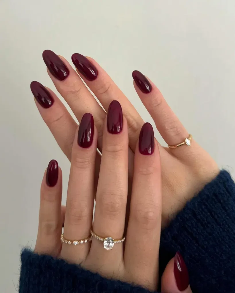 Wine red nails are proof that you don’t need extra design to make a strong statement. The color alone brings depth, elegance, and confidence while keeping everything clean and effortless. Whether you wear them short and glossy or slightly shaped for a softer look, wine red nails always feel timeless and put-together. If you love simple nails with bold personality, this shade is one you’ll never get tired of.