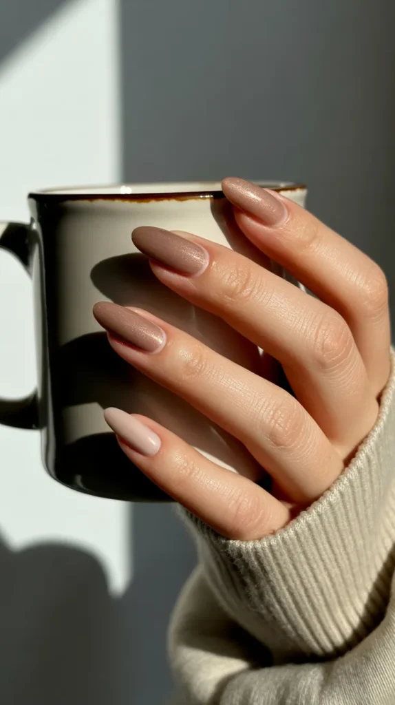 ☕ Stay polished: Keep cuticles hydrated and edges smooth clean shape is everything for winter almond nails perfection.