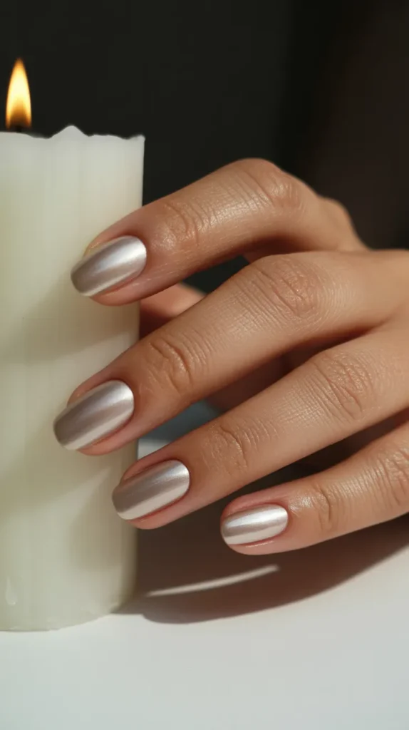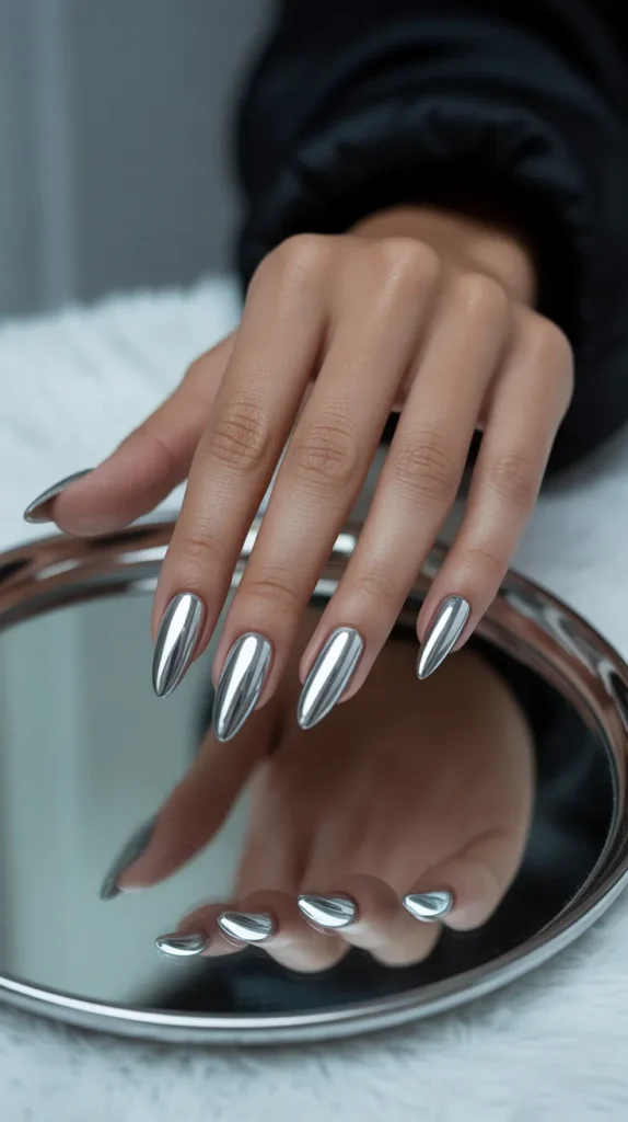 11. Silver Chrome Almond Nails
