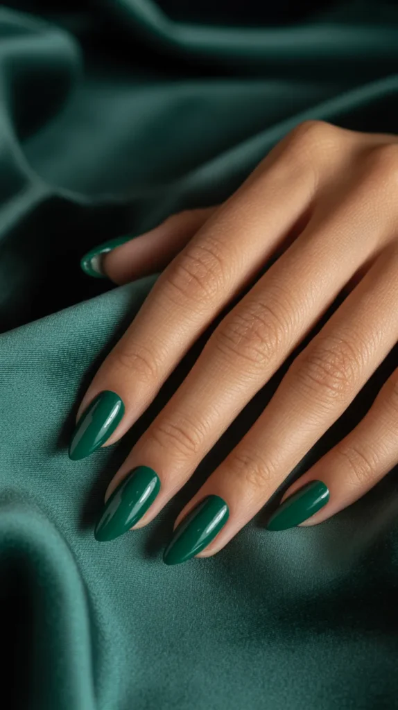 13. Emerald Green Almond Nails