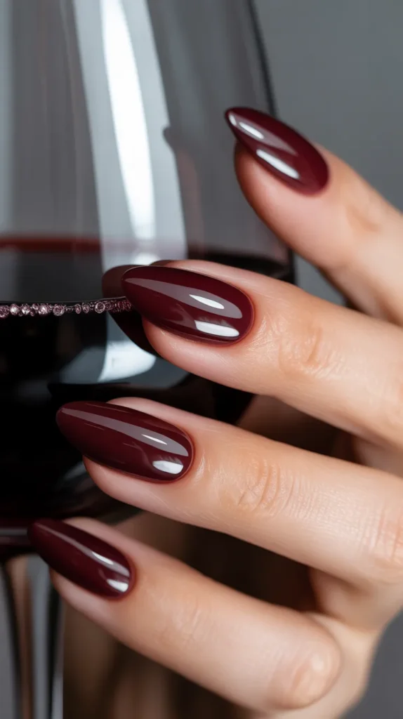 17. Burgundy Wine Almond Nails