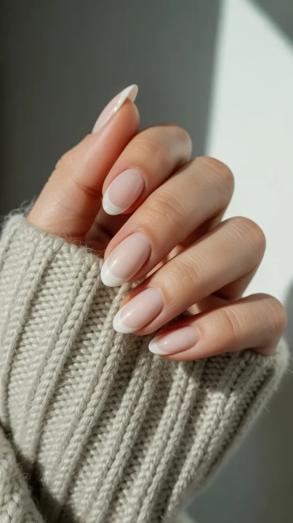 French fade almond nails are sleek, soft, and ultra-flattering. The gentle nude-to-white gradient adds polish without fuss. These are simple nails at their best elegant and easy to maintain through all your holiday plans. 💅