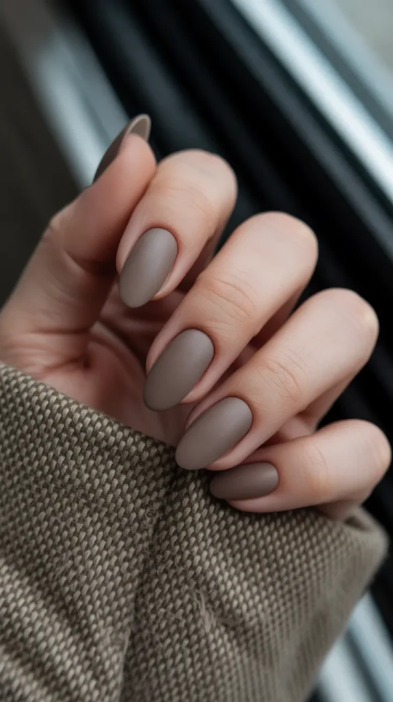 4. Matte Taupe Almond Nails