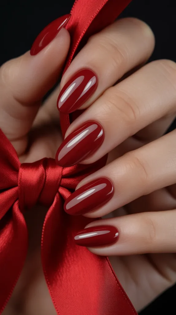 Red velvet almond nails bring all the drama in the classiest way possible. The glossy red hue adds instant classy Christmas nails glamour while keeping things elegant. It’s festive, bold, and timeless all at once. ❤️