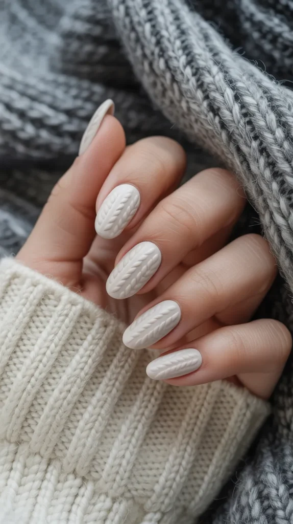9. White Sweater Texture Almond Nails
