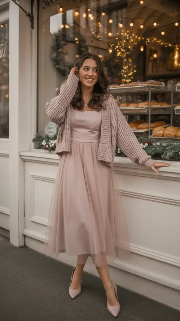 Nothing beats the whimsy of a tulle midi dress with a cropped cardigan and pumps. It’s soft, feminine, and has that birthday-girl sparkle 🎂 even if it’s not your birthday.