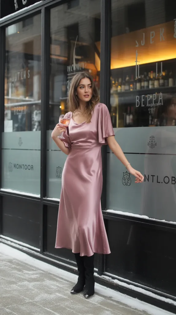13. Dusty Rose Satin Midi Dress
