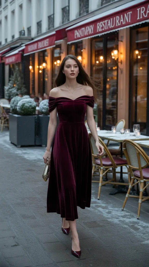 2. Velvet Off-Shoulder Midi Dress