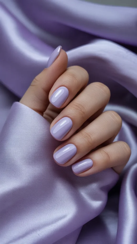 Lavender gel nails are the definition of soft glam. The pale purple hue with glossy shine gives a calm, feminine energy. These cute nails look incredible with cozy knits and silver jewelry. 💜