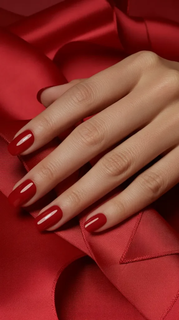 Red velvet gel nails are a December must-have. The high-shine finish gives that extra pop that makes red feel even more luxurious. These winter nails will never go out of style bold, festive, and full of confidence. ❤️