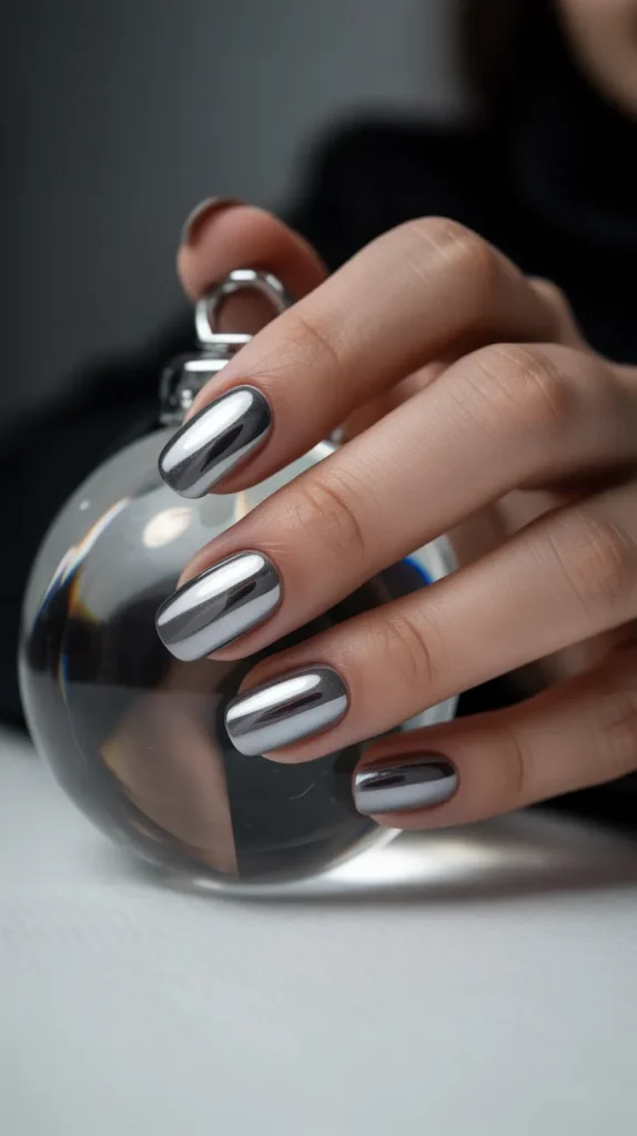 Silver chrome gel nails scream modern winter chic. The reflective surface adds a futuristic edge that feels bold but classy. Pair it with soft knits or metallic accessories for trend-setting winter gel nails ideas. 💫