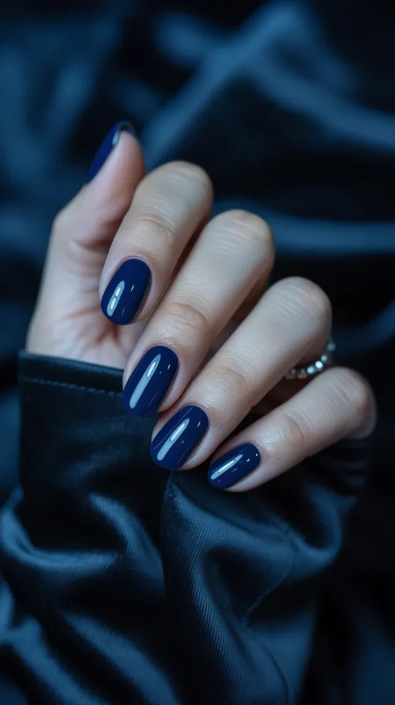 Deep navy gel nails are cool, mysterious, and perfect for winter nights. The glossy finish catches the light beautifully, giving them a soft glimmer. It’s a go-to color for winter nails that exude sophistication. 🌌