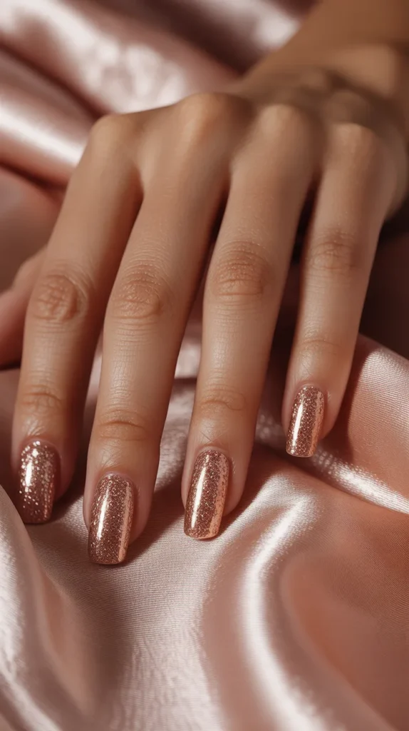 Rose gold glitter gel nails bring that subtle sparkle that never feels overdone. The blush-gold tone adds warmth while the gel finish keeps it sleek. It’s the perfect balance of cute nails and classy shine. 🎀