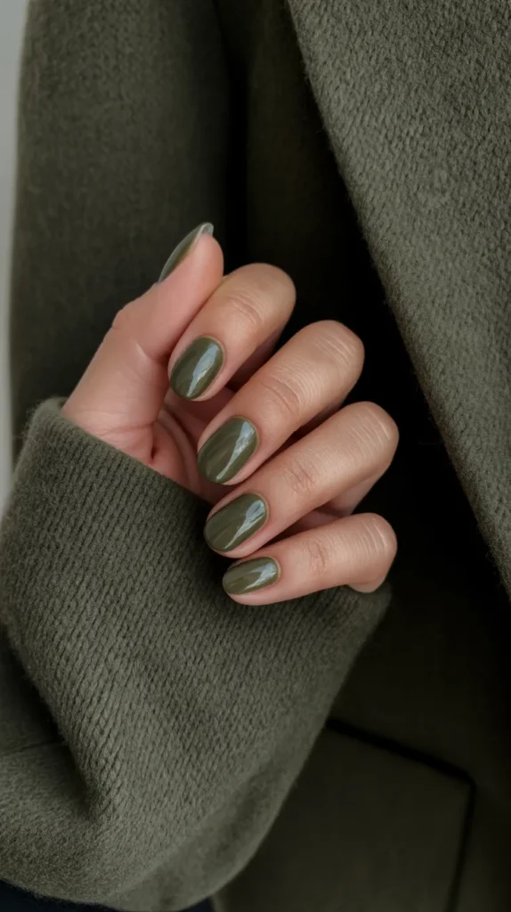 Olive green gel nails bring a trendy twist to traditional winter tones. The rich hue adds earthy sophistication that feels modern yet warm. It’s a must-try for anyone wanting unique winter nails this season. 🌿