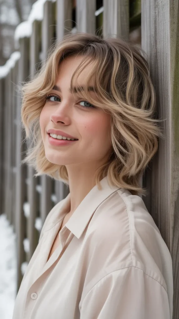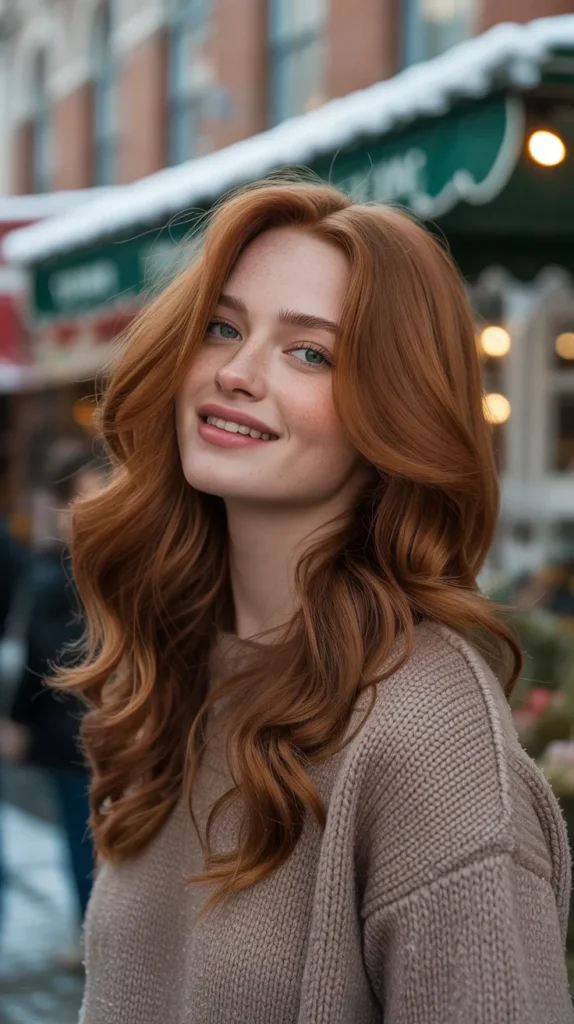 Auburn winter waves bring a fiery warmth to cold days. The rich red tones add personality, while the waves keep it chic and soft. This trendy hair look works beautifully against winter backdrops, from snowy parks to holiday parties. Auburn shades are perfect if you want to stand out without going too bright. It’s all about cozy warmth with a fashionable twist.