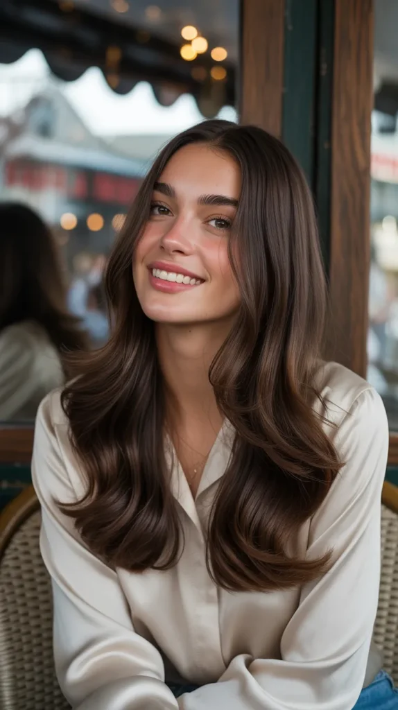 Deep espresso brunette winter hair never goes out of style, especially when paired with a glossy finish. The richness of this shade adds elegance and works beautifully with both casual and formal outfits. It’s the kind of cold hair color that looks effortless yet sophisticated. Perfect for a dinner date or holiday party, glossy brunettes bring a timeless chic vibe. If you want trendy hair without straying too far from natural tones, this is a safe yet stunning choice.