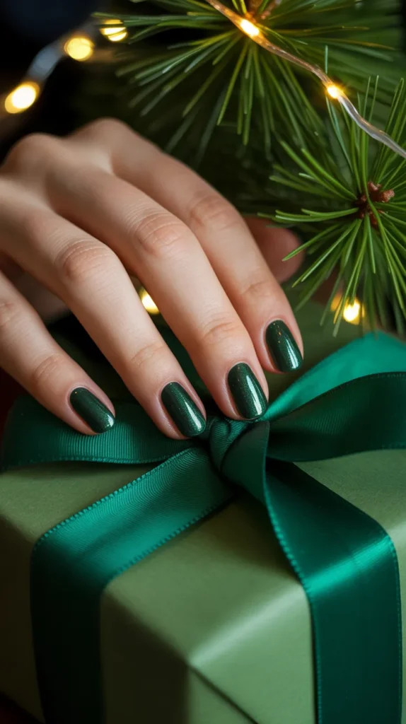 Emerald green nails capture the glow of twinkling Christmas lights. The rich, polished tone gives your winter nails that extra bit of seasonal magic sophisticated yet playful. πΏ