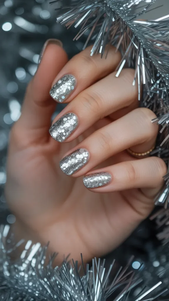 Chunky silver glitter captures the sparkle of frost on a clear morning. These winter nails are pure celebration dazzling but sophisticated. βοΈ