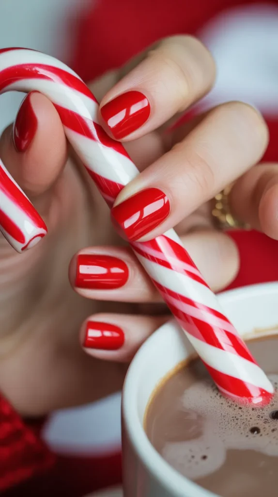 Candy cane stripes add just the right dose of nostalgia. Alternating red and white lines make your December nails pop perfect for anyone who loves a playful festive touch. β€οΈπ€