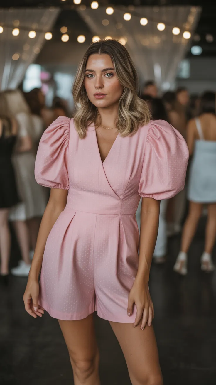For your 18th birthday party, a party romper with puff sleeves is a stylish choice that stands out. This outfit combines fun and elegance, making it perfect for celebrating this milestone. The puff sleeves add a playful touch, while the fitted design keeps it chic.