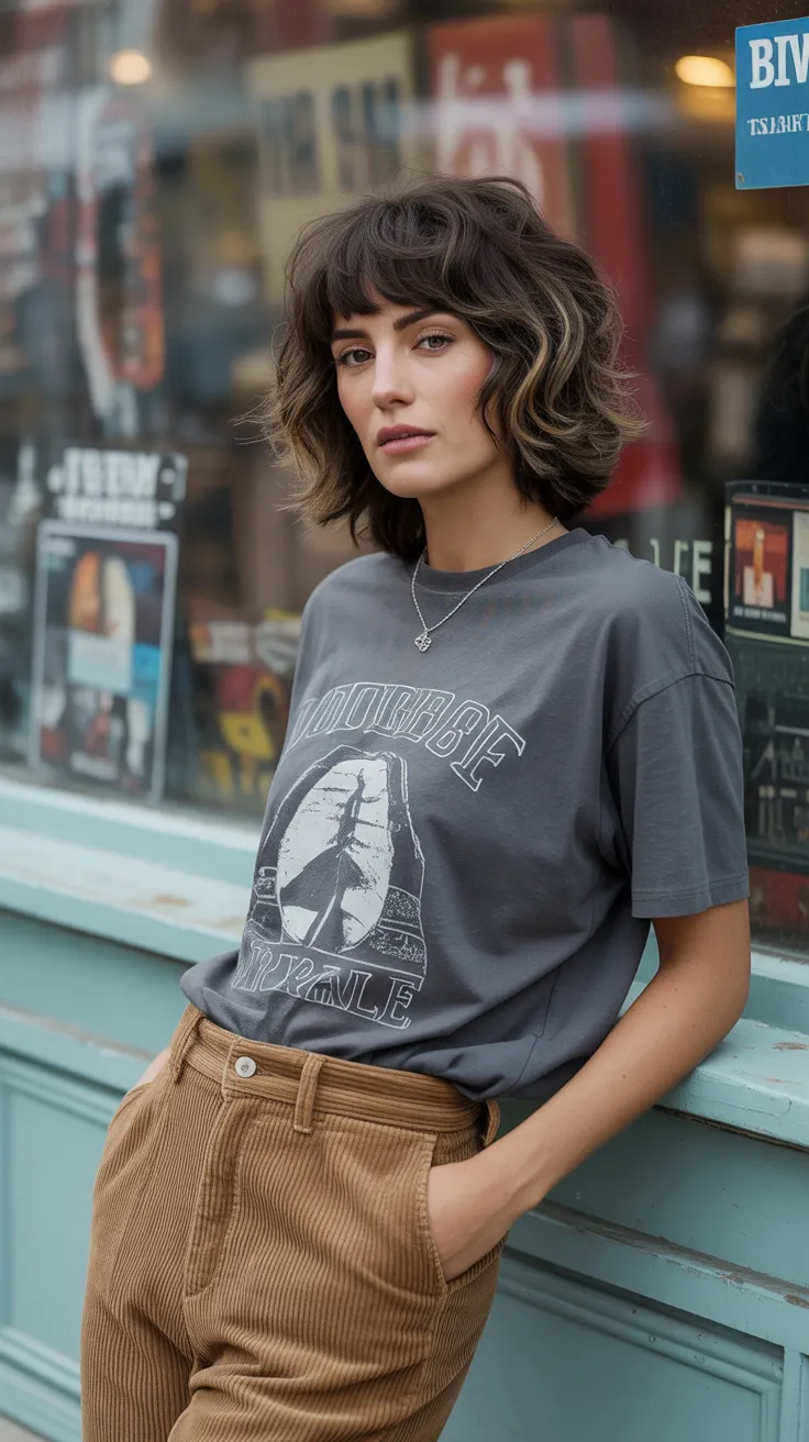 In the image, you can see how the curls and waves complement the side-swept bangs, creating a harmonious balance. The overall effect is youthful and fresh, capturing the essence of retro fashion. Pairing this hairstyle with bold makeup, like a vibrant lip color, can elevate the look even further.