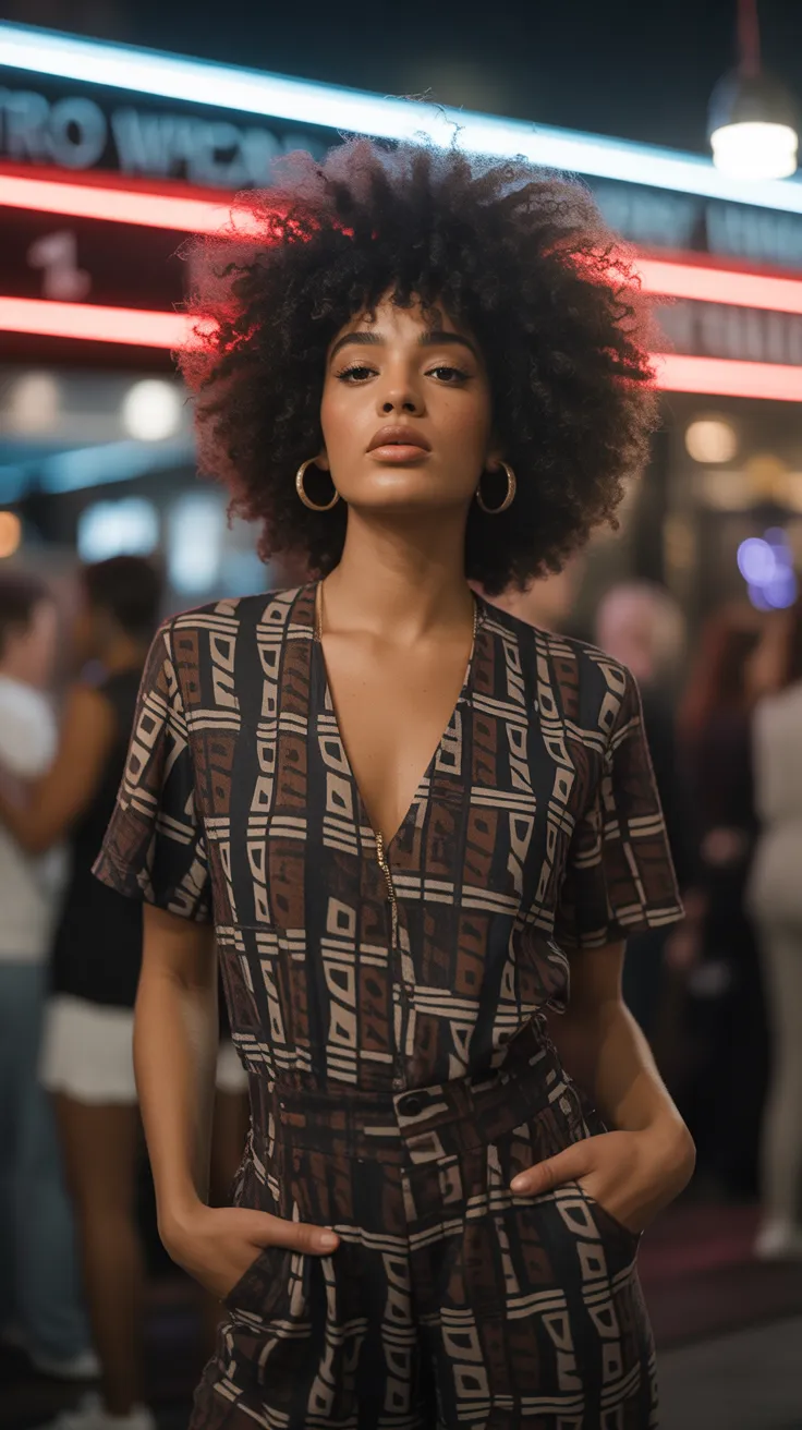 In the image, you can see a woman with a radiant smile, embodying the spirit of the era. Her afro is full and fluffy, perfectly rounded, which highlights her features beautifully. This look is all about embracing natural texture and celebrating diversity.