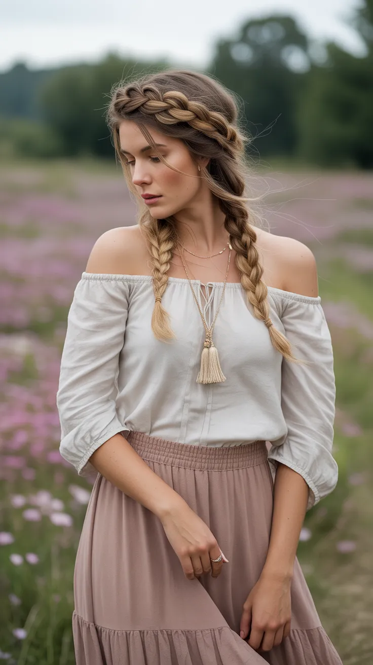 To achieve this look, start with slightly wavy hair for added texture. Braid a section at the front and pin it around the head, securing it with bobby pins. Finish with a few decorative flowers or beads to elevate the style. This hairstyle is not just beautiful; it also reflects the carefree spirit of the era.