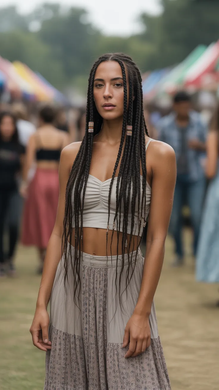 The look is playful yet sophisticated, making it perfect for any occasion. Whether you’re heading to a festival or just hanging out with friends, these braids will make you feel stylish and comfortable.